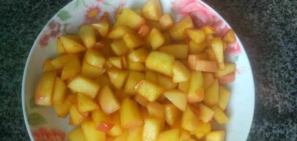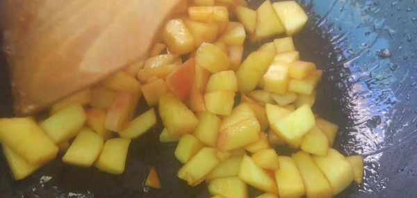 第六部:把蘋果丁的水分全部炒幹,再盛出放碗裡備用。