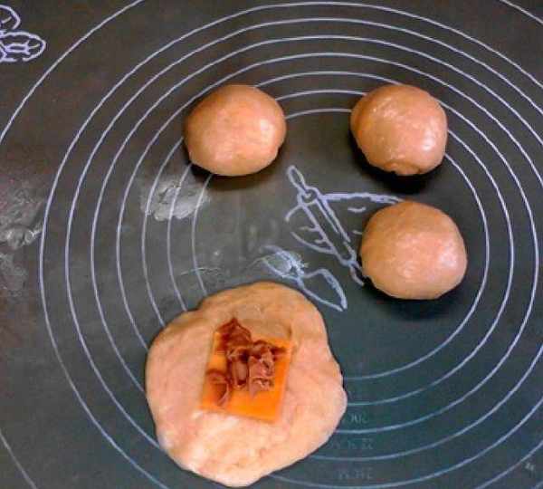 芝士可以是隨便什麼芝士,餡料的用量可以根據自己喜好酌情增減。包的時候需註意捏緊收口,以防烤的時候露餡。