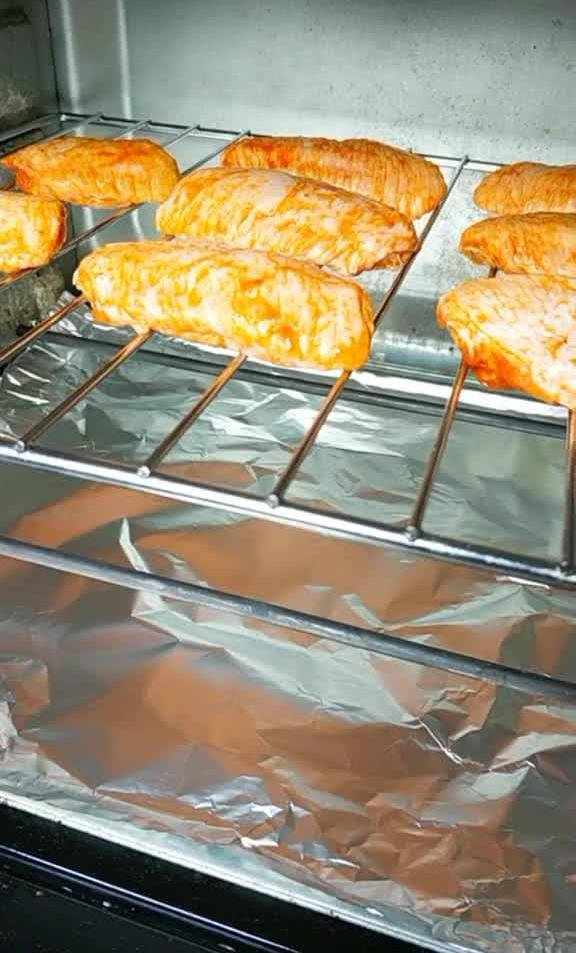 2、烤箱的溫度不可超過200度,180-190度之間最為合適,烤雞翅的過程中,會冒出大量的油脂,所以要在它底部墊上錫箔紙,這樣清理起來比較方便。