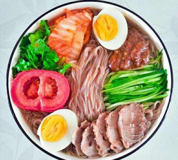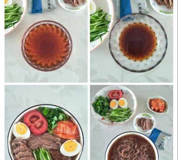 原料:蕎麥面、醬牛肉、辣白菜、黃瓜、香菜、西紅柿、煮雞蛋、冷面醬包、冷面濃縮汁、純凈水。