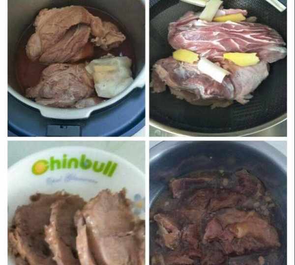 第2步、正好傢裡醬牛肉,切瞭5小片。