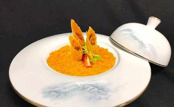 粉蒸肉裹上春卷皮,油溫5-6成熱放入鍋中炸至金黃擺盤即可
