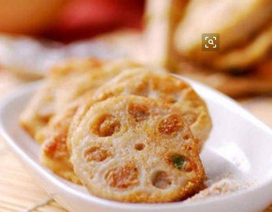 做法:第一步:先把買回來的香菇洗凈,用溫水泡發。藕洗凈去外皮切成稍微厚點的片狀,用少許鹽醃軟。雞蛋打碎放入面粉、淀粉調勻,餳10分鐘。香菇切碎;第二步:鍋裡放油,放入香菇翻炒。放入料酒、鹽、味精翻炒均勻即可。盛入碗中晾涼。把餡夾入藕夾。第三步:鍋裡放足量的油燒至六成熱,把藕夾裹上蛋糊,用筷子逐個夾入油鍋。炸至表面凝固呈淡黃色撈出,清除面尾。第四步:再燒熱油鍋,將藕夾重炸焦酥,呈金黃色時濾出油,灑入花椒粉,淋入香油炒勻即可。放到鋪瞭生菜的盤中即可。