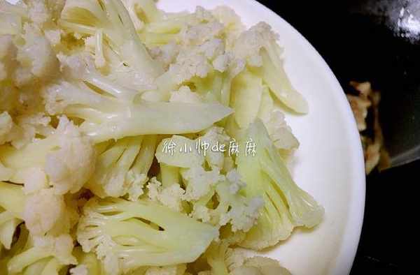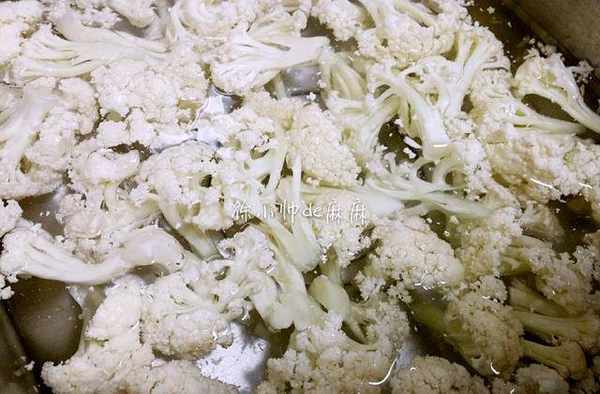 2、讓花菜好吃不能少的步驟:將花菜焯水,然後瀝幹水。水煮開後將花菜放進去30秒即可。切記是用煮沸的水,而不是冷水和花菜一起煮開。