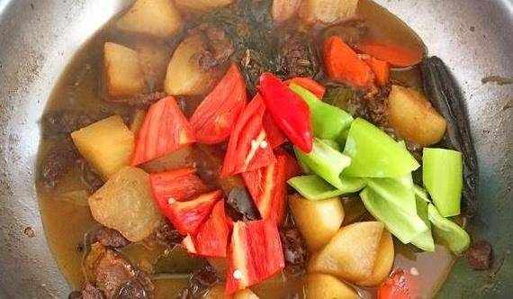 9、等到蘿卜熟透之後,然後再加辣椒放入鍋中,最後再加入適量的食用鹽和白醋胡椒,再繼續煮兩分鐘左右就可以出鍋瞭。