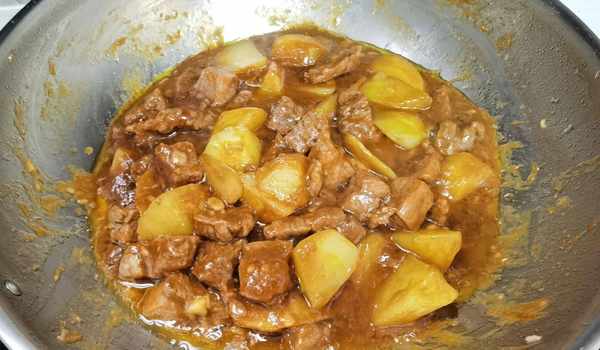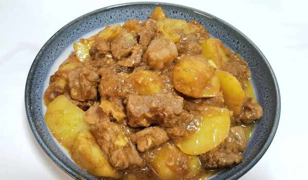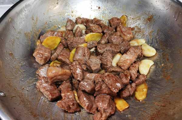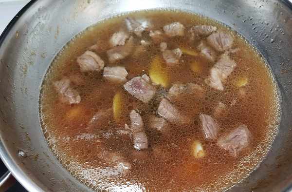 做法:鍋裡開火,不用放油,把牛腩倒入,直接翻炒,炒幹水份,煸出油脂,放蒜瓣,薑片,一起翻炒,煸出香味,接著放少許蠔油再煸炒一會,倒入莫過牛腩的清水,大火煮開,燜煮約20分鐘,放入土豆,再燜煮約10分鐘,最後放入咖喱塊,小火煮至湯汁濃稠即可。不用放鹽,咖喱塊有咸味的。