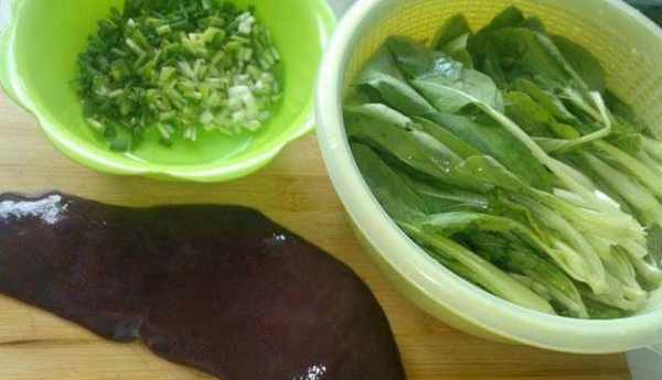 食材:豬肝、青菜(小白菜或菠菜就好瞭)