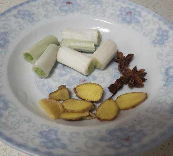 第4步、蔥切成小段,薑切成片,八角備用。