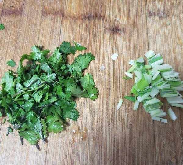 第5步、蔥和香菜洗凈切碎備用。