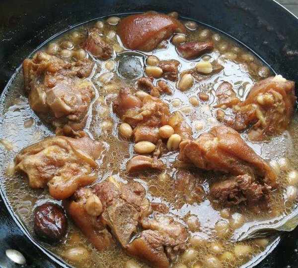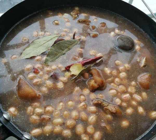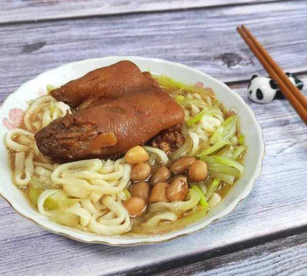 原料:豬腳、花生、面條、蒲瓜、薑、幹辣椒、八角、桂皮、香葉、草果、花椒、冰糖、油、鹽、料酒、生抽、老抽。