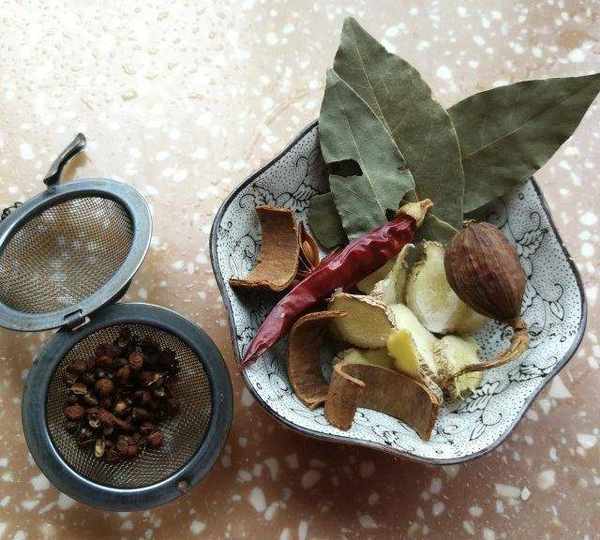 第5步、放入香料,加足量水燉煮一個小時後加鹽調味再燉半個小時。