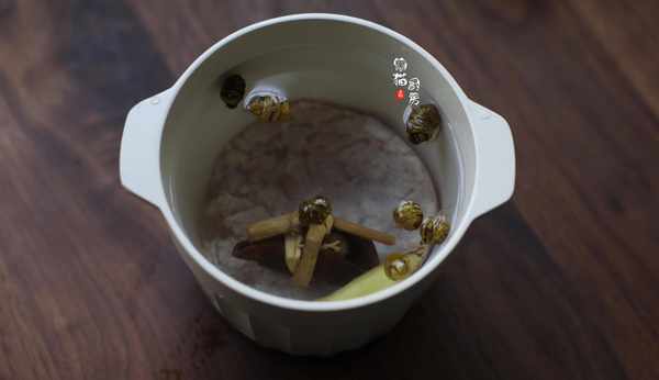 食材:瘦肉200克,生薑2片,石斛10克,三寶紮一塊,清水2碗。