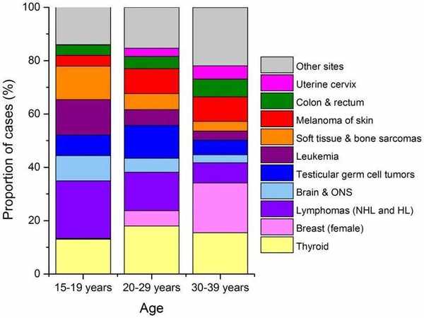不同年齡層的年輕人群的癌症類型有很大差异