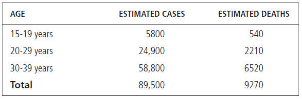20世紀80年代末,20-29歲和30-39歲年齡層的男性的癌症發病率突然迅速上升,隨後又在90年代初恢復,這與愛滋病的爆發時間相吻合,這是由於愛滋病暴發導致的卡波西肉瘤患者新增。