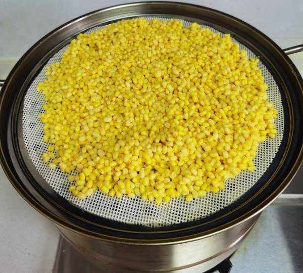 第4步、控幹水分鋪在篦子上蒸50分鐘。
