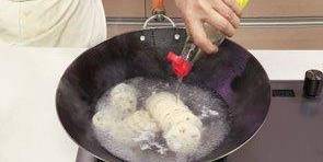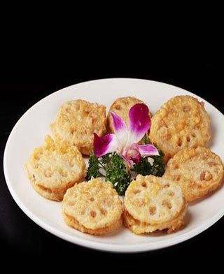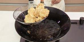 將藕夾放入油鍋裡,慢火炸約3分鐘至熟。