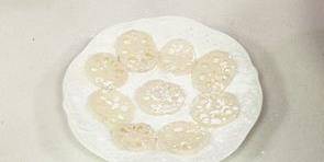將去皮洗凈的蓮藕切約0.7厘米厚片。