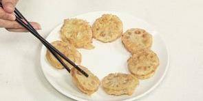藕夾是街邊常見的小吃,自己在傢做藕夾,也很簡單,而且吃得放心,不妨一試。