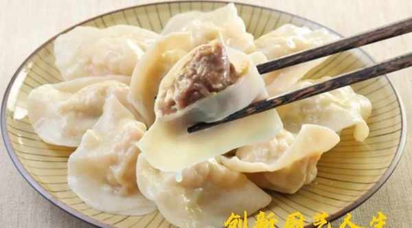 藕餡餃子是以水調面團作皮,以鮮肉餡加入藕粒拌和作餡料制作而成。其制品熟制後既具有鮮肉的鮮嫩美味,又有蓮藕的清香。