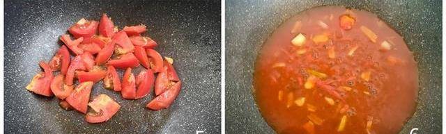 5.油熱,放入切好的番茄塊翻炒至軟爛
