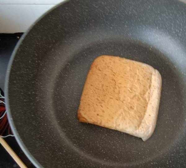 第8步、吐司要邊邊那塊,放鍋裡煎一下。