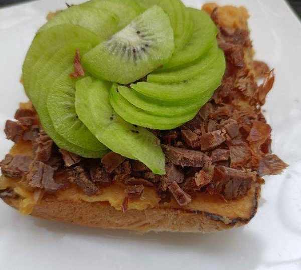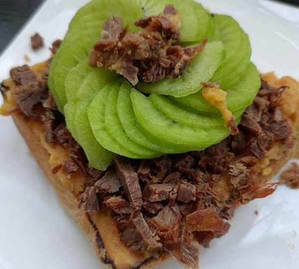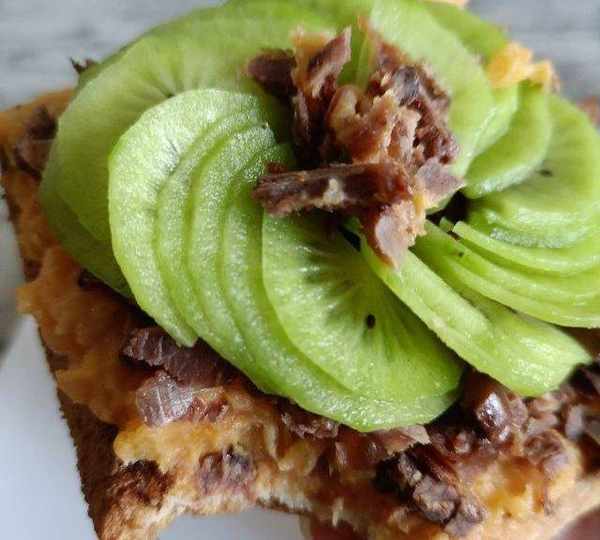 原料:土司、紅薯、獼猴桃、醬牛肉、煉乳。