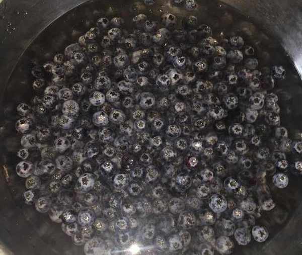 首先我們需要準備一些新鮮的藍莓,把藍莓放入水中,加上少許的食用鹽,充分攪拌均勻以後,讓藍莓在水中浸泡15分鐘,等到浸泡好瞭以後再撈出來,用清水沖洗幹凈。