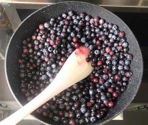然後我們準備一口不粘鍋,把我們準備好的藍莓放在鍋裡邊,根據自己的口感加入冰糖或者白砂糖,再擠上一些檸檬汁,用小火慢慢的熬住,在熬粥的時候一定要一邊煮一邊攪拌,防止粘鍋。