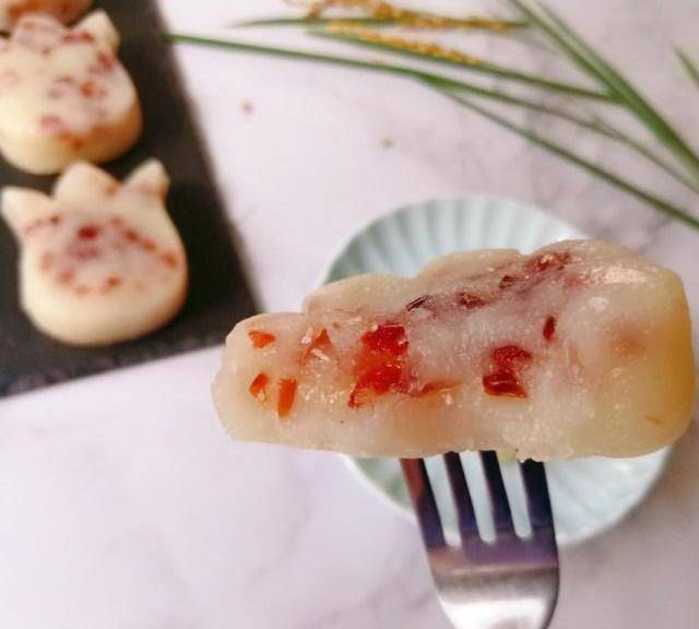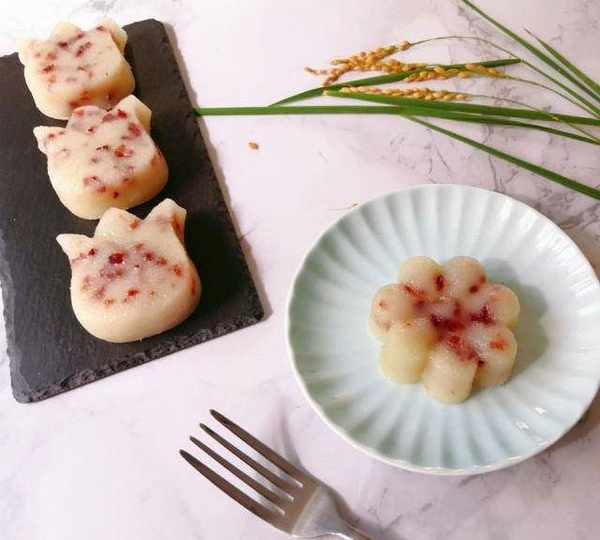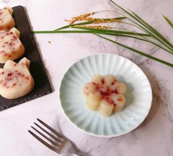 南方的年糕和北方的不一樣,北方是咸口的,南方人叫北方人的年糕為“白粿”,南方人的年糕是甜的,過年時大傢都要吃年糕,預示著“年年高”,傳統的年糕是用蒸籠蒸的,費時較長,用微波爐做年糕,十分鐘搞定,可謂是快手美食。年糕主要是用糯米粉,加些粘米粉口感更筋道,不粘牙。