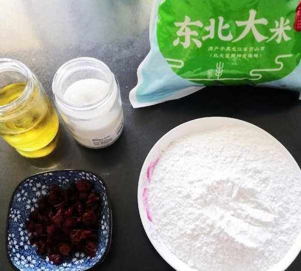 原料:大米、糯米粉、水、白糖、玉米油、蔓越莓。