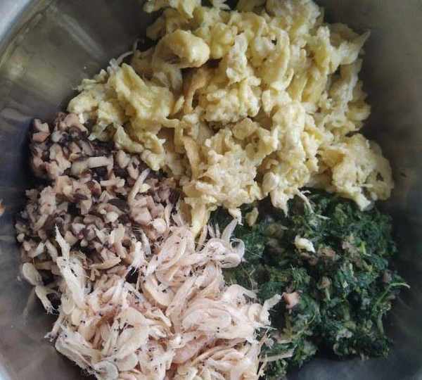 原料:蒲公英、香菇、雞蛋、餃皮、鹽。