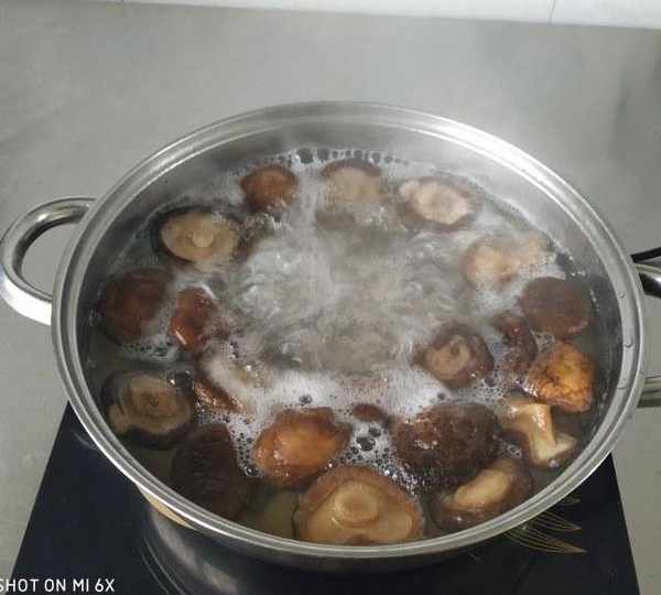 第4步、香菇也焯水,多是還包瞭韭菜味的。