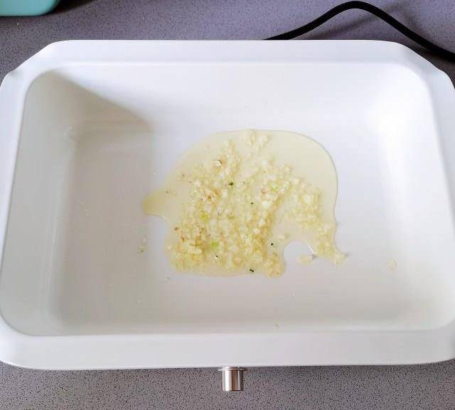 第6步、鍋裡放入3勺食用油,放入蒜末炒香。