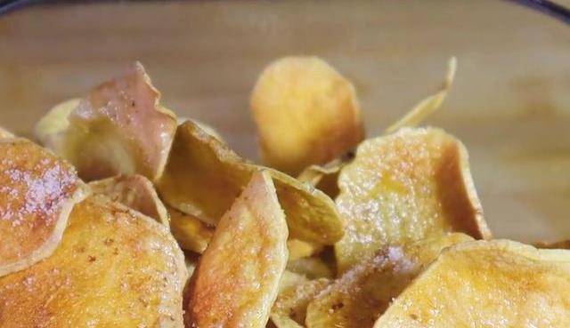 然後過一個半小時可以翻一面,這個薯片已經封好,油溫五成熱發瞭烤幹水分的薯片,薯片都會特別濃瞭。在這裡上面撒瞭辣椒面。咱們還有燒烤料。