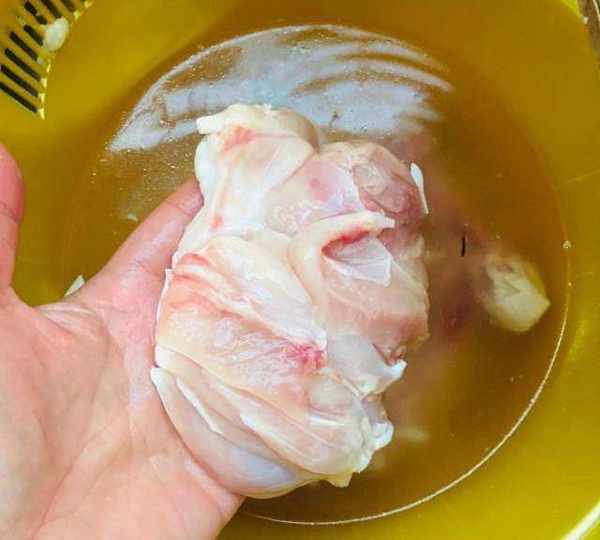 第1步、雞腿洗凈,剔骨,再次抓洗,剪成塊。