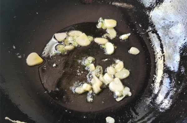 4.在鍋中加少許油,加入切碎的蔥和大蒜片,然後炒香。
