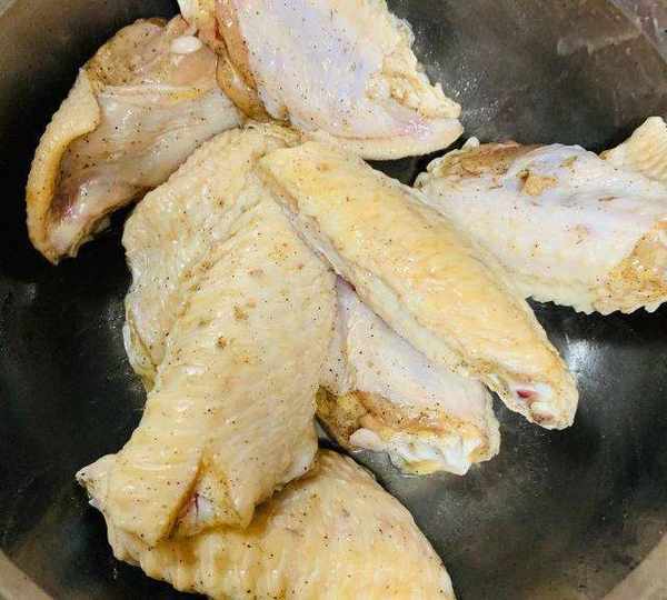 第1步、雞翅洗凈,用蔥、薑、白酒多泡幾個小時,讓雞翅裡面的血水能夠很好的排出,使得雞翅吃的時候不腥。