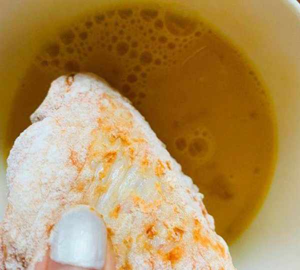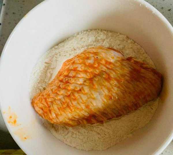 第10步、將雞翅放入面粉中,輕裹一層薄面粉。