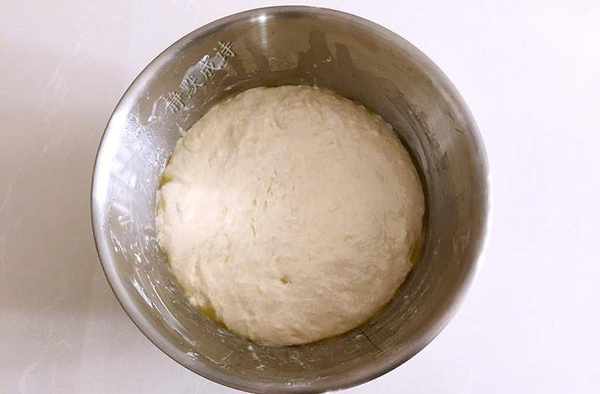 2、發酵好以後,用手把濕面團再搋(chuai)一會兒,至面團組織細膩而均勻,然後倒入少許食用油在面團上方(便於後續操作),繼續放置餳發30分鐘左右。