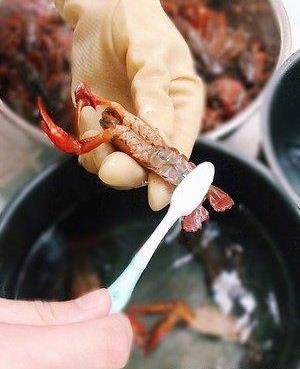 用刷子刷掉小龍蝦身上的淤泥,自己吃的一定要刷的幹幹凈凈