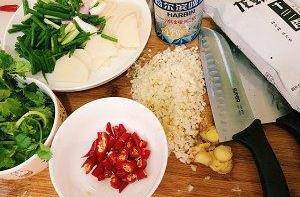 準備蒜泥,蔥段, 薑片,香菜,小辣椒,小龍蝦十三香料包,一瓶啤酒,土豆切片