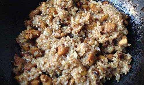 放入煮熟的糯米飯翻炒均勻即可關火(最好嘗一嘗,如果淡瞭可以加點鹽)