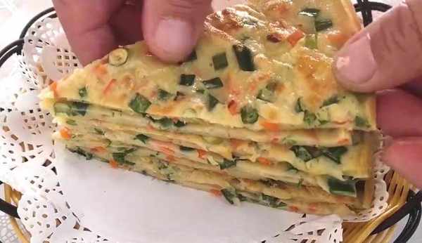 反復翻面烙兩三次,烙至表面焦黃就可以盛出瞭。把大餅放在菜板上切一下,這樣可以方便拿著吃,也可以切成自己喜歡的造型。看一下這個餅非常的薄,吃起來外焦裡軟,筋道好吃,有股淡淡的蒜苔清香味,吃著還有蒜苔的味道,越嚼越香,有時間的話你也試試。