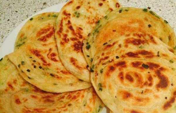 4.從頂部和底部滾動放置在中間的蛋糕,然後將它們一起滾動成兩層,根據尺寸切成3-4段,並用手切割切割表面。 5.再次扭轉,用手將其壓平,將其揉成薄圓餅,將花生油加熱到鍋中,將蛋糕放入蛋糕中,小火烙至2面金黃就好瞭。