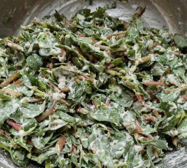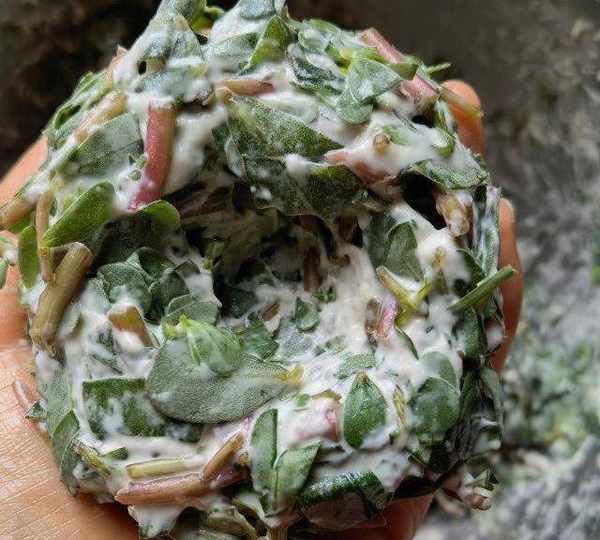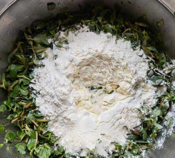 原料:馬齒莧、面粉、鹽、玉米油、蔥油。