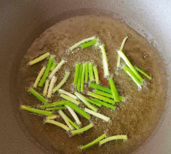 第2步、小蔥涼油入鍋。
