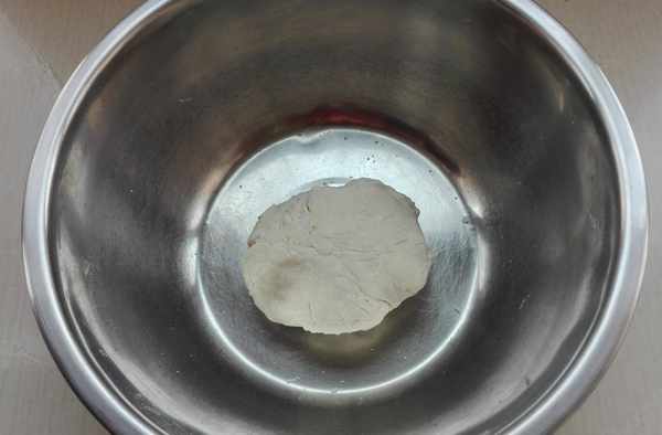 2、將其揉成不見幹粉的面團,面粉會有些硬,正常的,不需要揉成很光滑狀態,然後蓋好保鮮膜將其醒發20分鐘。