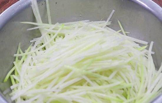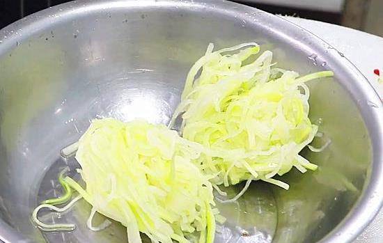 做法:1、先把蘿卜擦成絲,再撒入少許鹽,用手抓一抓,把蘿卜的水分抓出來,再把水分擠幹,再放入一勺食用油,讓每根蘿卜絲都沾上油,撒入面粉,拌一下,讓每根蘿卜絲都沾有面粉。