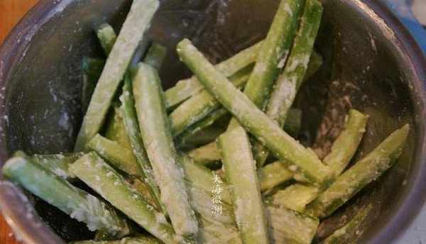 5、攪拌均勻,讓每個蘿卜條都裹上面粉,這一步可以換成面糊,裹上面糊效果會更好;