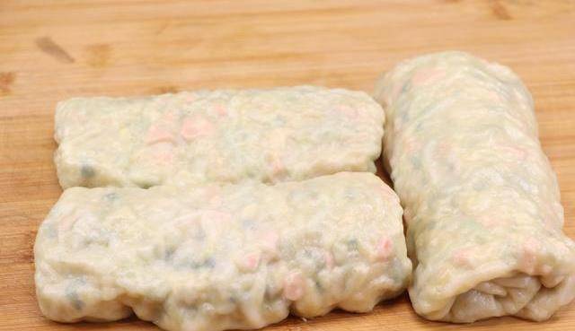 攪成大的絮狀以後,下手揉成團。揉成團以後,蓋上蓋子先松弛五分鐘,松弛以後的面團很容易就揉光滑瞭。像這樣就可以啦,蓋上蓋子防止風幹。鍋中燒開水,放入蘿卜絲。焯燙一下,去除蘿卜的辛辣味。兩分鐘左右就可以瞭,時間到瞭以後控水撈出,不用過涼,放入碗裡。不用關火將油豆皮焯一下水。超水兩分鐘左右,去一下豆腥味兒。焯好以後,控水往入碗裡。將蘿卜平鋪一下散熱。洗幹凈的小蔥切成蔥花,收入碗裡。接下來,再切一些火腿丁,不喜歡吃火腿的也可以放入一些豬肉丁都可以。和蔥花放在一起。這會蘿卜絲也放涼瞭,用手擠幹裡面的水分。也不要太幹,帶點水分的話口感會非常不錯。擠好後,放在案板上,將蘿卜絲簡單的改一下刀。將豆皮簡單的切一下,放入大碗裡。將蔥花和火腿也加進來。接著,在加入一塊方便面,將其掰碎。加入方便面,為瞭是吸收蘿卜裡多餘的水分,這樣就不容易出湯瞭。再往裡面加入一把蝦皮,提餡補鈣。根據個人口味,加入適量的食用鹽,加入一勺蠔油,適量的小磨香油。最後加入食用油,將食材混合均勻,這樣餡料就調好瞭。小碗裡打入三個雞蛋。用筷子攪散,接下來將案板上撒上一些幹面粉。把面團取出來,不用揉,直接搓成一個長條就可以瞭,搓成長條以後再切成大小均勻的小劑子。